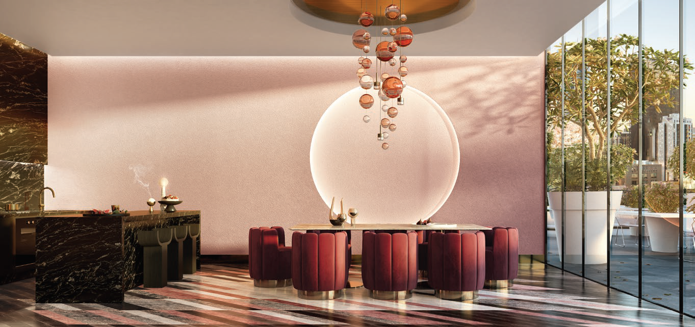 State-of-the-art resident amenities include: indoor pool and spa, with steam room and sauna + gymnasium, yoga and personal training studio, private dining rooms, and a luxuriously appointed residents’ lounge, outdoor garden terrace with BBQ facilities, private cinema room, karaoke room; Complete with its own bar, games room featuring foosball, table tennis and a giant TV ideal for entertaining guests…